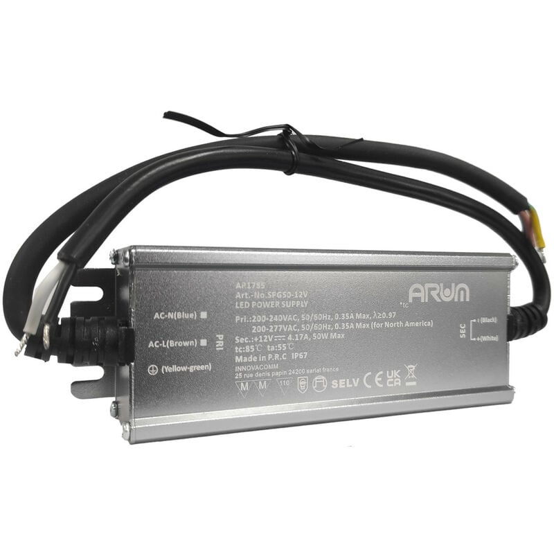 Arum Lighting – Transformateur LED étanche IP67 60W 12V DC 5A – Tension d'entrée 220V – Applications extérieures et intérieures