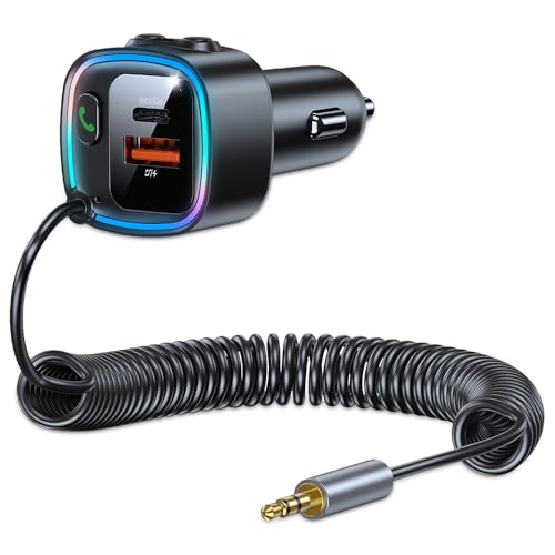 Hojalis Adaptateur Bluetooth 5.4 Voiture, Récepteur Bluetooth Jack, Transmetteur FM Bluetooth Voiture avec PD 30W & QC 12W, Emetteur Bluetooth Voiture, pour Appels Mains Libres Et Musique sans Fil