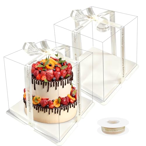 2pcs Boite a Gateau Transparente Boite Transport Gateau Boite Layer Cake 21 x 21 cm Boîte à Gâteaux en Plastique avec Ruban pour Présentoir à Dessert et Gateau (21 * 21)