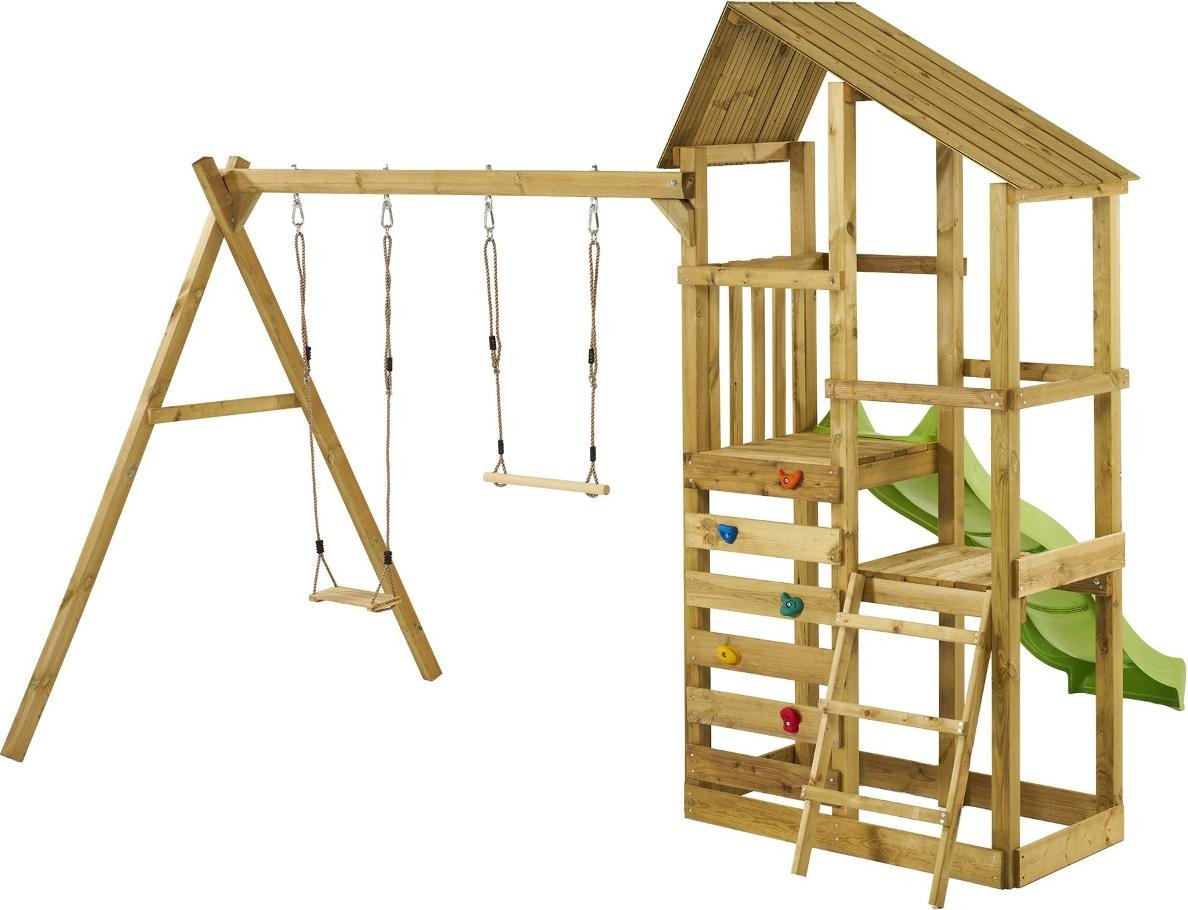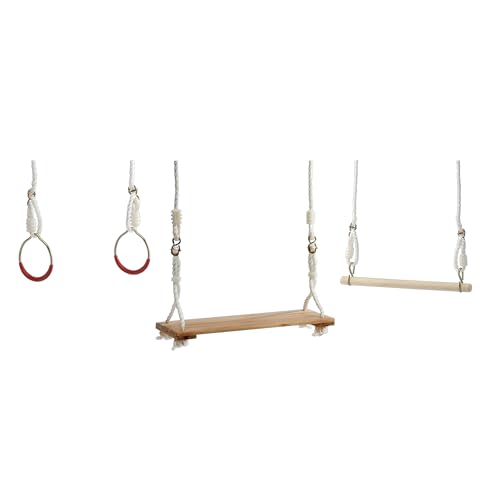 Trapèze Balançoire Enfant Extérieur, Bois avec Anneaux et Barre de Gymnastique, Anneaux en Plastique