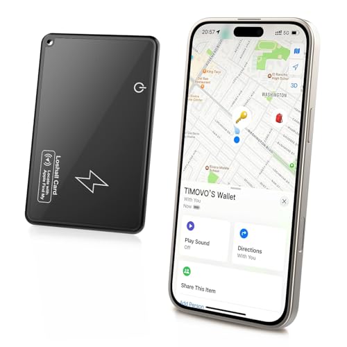 TiMOVO Carte Traqueur Portefeuille pour Apple Find My (iOS Uniquement) Rechargeable sans Fil Localisateur Portefeuille pour Sacs/Passeports Traqueur Localisateur Objets Bluetooth étanche IP68 - Noir