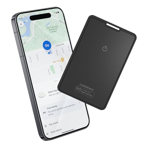 Localisateur Mince au Format Carte Ultra Fin 1.6mm Compatible avec Apple Find My (Système d’iOS – Dispositif Anti-Perte Rechargeable sans Fil – Traqueur Noir Discret pour Portefeuille, Sac ou Bagage