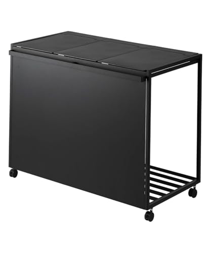 Yamazaki 1823 TOWER 3~Compartment Trash Can with Casters, black, Steel/Polypropylene/Nylon, 76 x 44 x 60 cm
