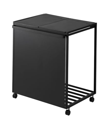 YAMAZAKI 1821 TOWER 2~Compartment Trash Can with Casters, black, Steel/Polypropylene/Nylon, 52 x 44 x 60 cm