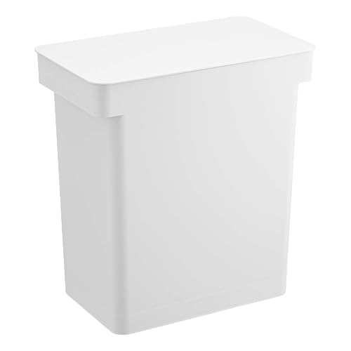 YAMAZAKI 5427 TOWER Airtight Trash Can with Caster, white, Polypropylene/ABS Resin/POM Resin/Silicone/Steel, 41 x 24 x 42.5~65.5 cm