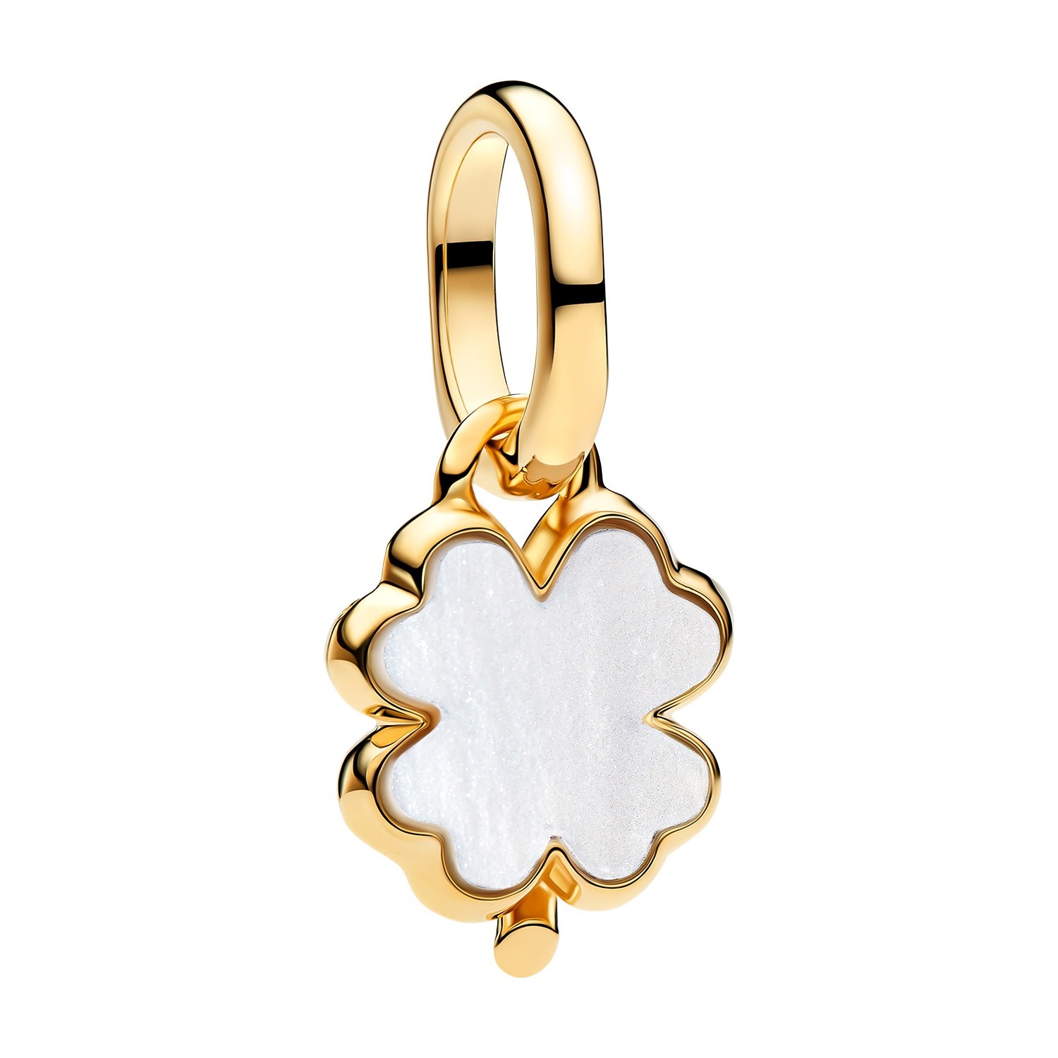 PANDORA Charm trèfle porte-bonheur blanc en plaqué or 14 carats avec aspect nacre et zircone cubique, breloque trèfle compatible Moments, 764564C01