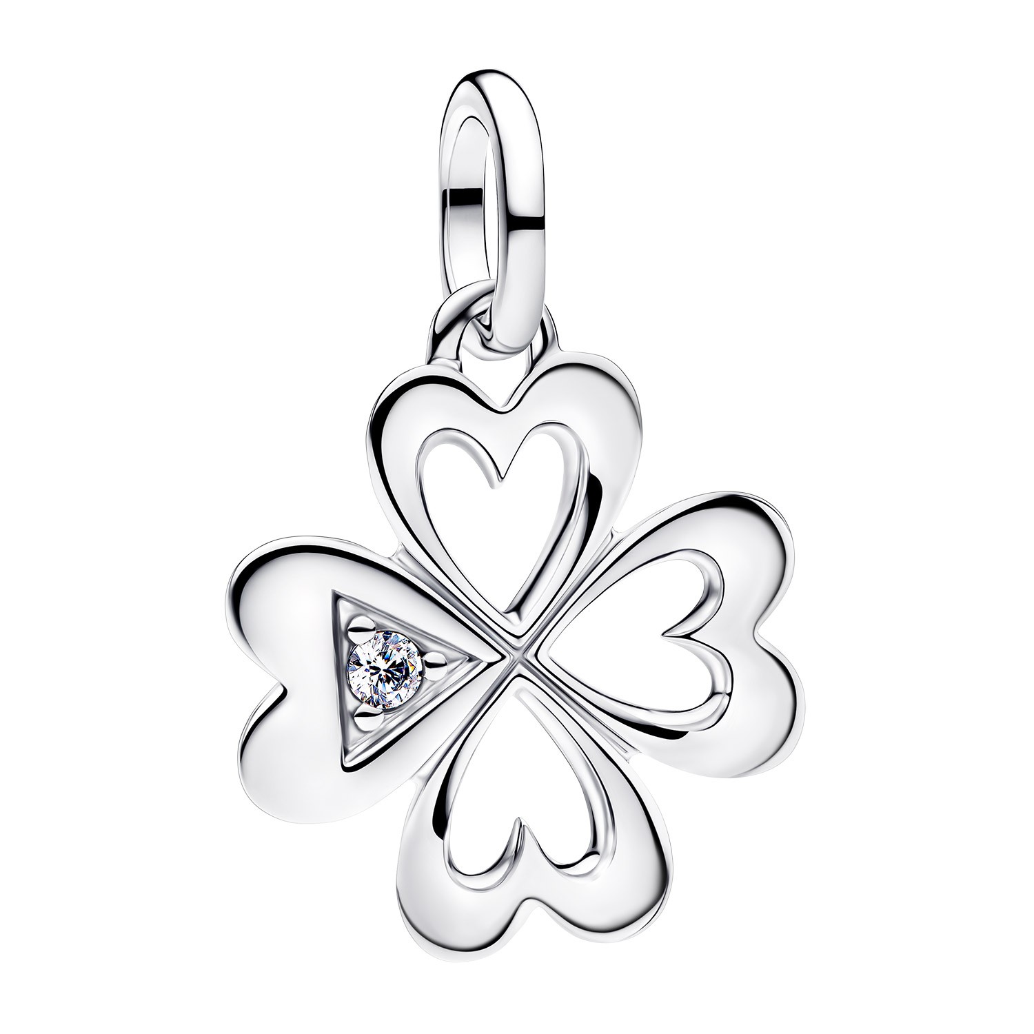 Charm trèfle chance porte-bonheur pétale strass en argent 925 - Les Folies pour Pandora, Argent sterling, Zircone cubique