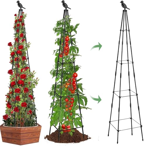 Lot de 2 Treillis de 1,8 m pour Plantes grimpantes d'extérieur, Supports de Treillis pour Plantes grimpantes, Cages de Tour de Support de tuyaux métalliques revêtus de Plastique pour extérieur et