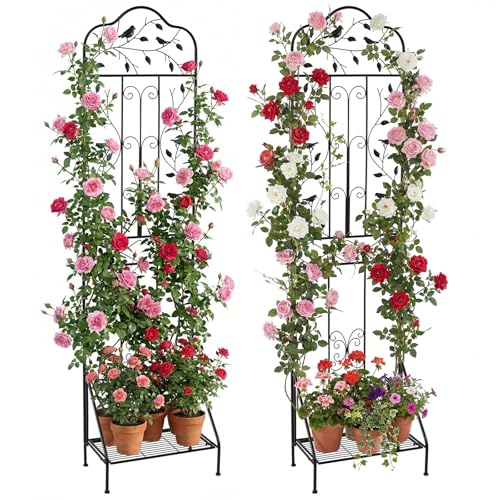 FANTASK Lot de 2 clôtures de Jardin, étagère à Fleurs et Support pour Plantes, tuteur décoratif avec Socle, Treillis en métal, Treillis pour Plantes grimpantes, Fleurs, légumes, Noir