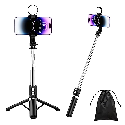 Trépied Selfie Stick avec télécommande sans Fil, trépied 43'' pour iPhone avec lumière d'appoint LED pour iPhone 16/15/14/14 pro/13/13 Pro/12/11/11 Pro/XS Max/XS/XR/X/8/7 et Smartphone Android
