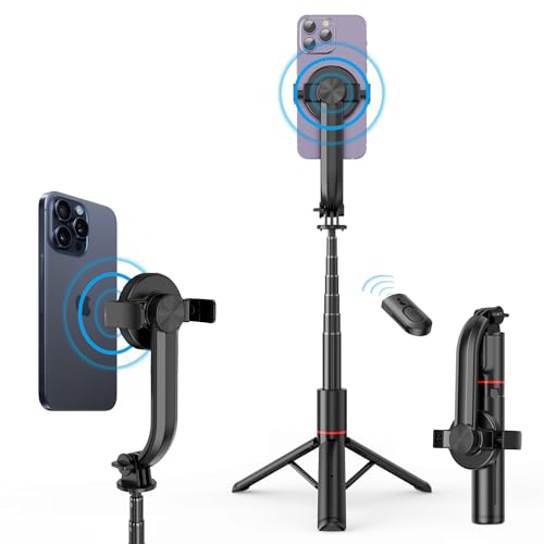 KIWIFOTOS Mini trépied magnétique pour iPhone MagSafe Selfie Stick avec télécommande sans fil pour iPhone 16 15 14 voyage vlogging enregistrement vidéo trépied pour téléphone portable Samsung Google