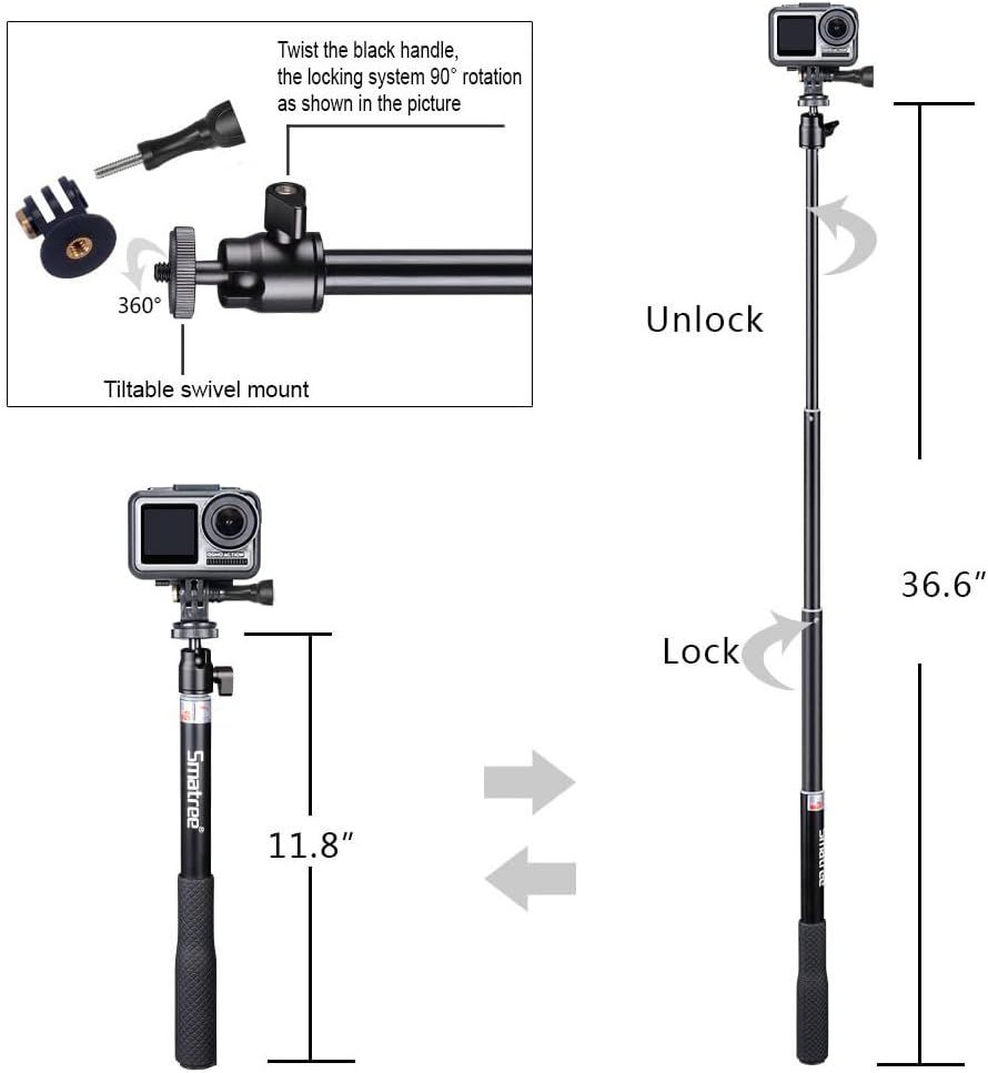 SMALLRIG Perche à selfie pour caméras d'action, extensible de 7,8 à 37,4 pouces, avec trépied et support de téléphone, modèle 5403