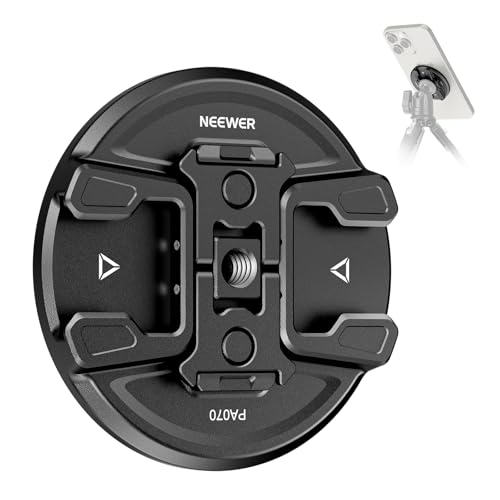 Neewer Support de téléphone magnétique pour trépied avec Fixation caméra d'action, Chaussures Froides, Filetage de 1/4" Compatible avec MagSafe iPhone 16 15 14 13 12 Série DJI Adaptateur à libération