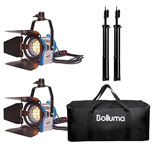2x500W Photo Studio Fresnel Tungstène Spotlight Vidéo Film Kit Eclairage Mandarine Continu Projecteur avec Support de Lumière, Sac Trépieds et Ampoule Halogène pour Photographie