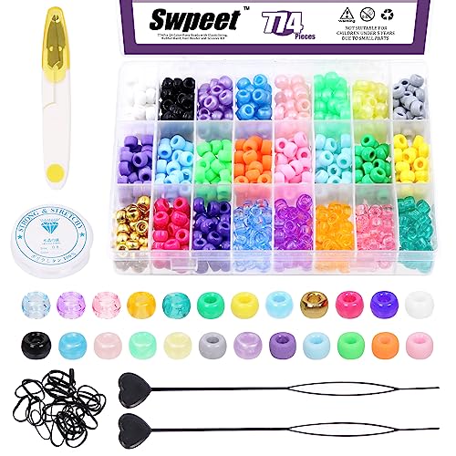 Swpeet Lot de 774 perles de 24 couleurs pour kit de tresses de cheveux, bracelets en caoutchouc, y compris des perles de bonbon, des élastiques en caoutchouc, des bières rapides pour les tresses de