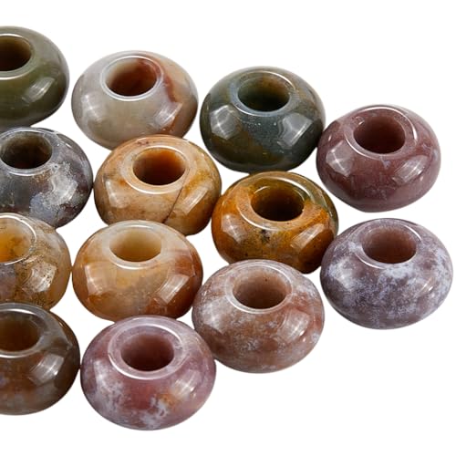 SOFPLATE 1 boîte de 20 Perles de Pierres Précieuses Naturelles de 14mm Agate Indienne Rondes à Grand Trou Rondelles Européennes Perles D'Espacement en Macramé pour Tresses de Cheveux Fabrication de B