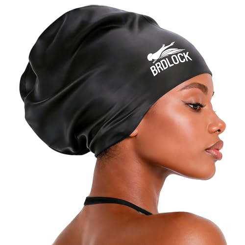 BRDLOCK Bonnet de Bain Extra Large pour Femme, Bonnet de Bain pour Tresses, Dreadlocks pour Cheveux Longs, 100% Silicone étanche, Garde Vos Cheveux au Sec