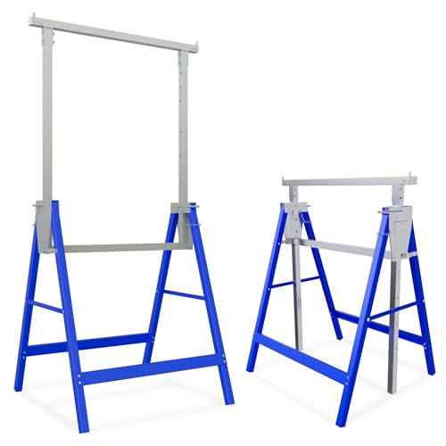 AufuN Lot de 2 tréteaux d'échafaudage réglables en hauteur de 800 à 1300 mm - Support stable pliable - Charge maximale : 150 kg - Supports en métal pour un rangement et un transport faciles - Bleu