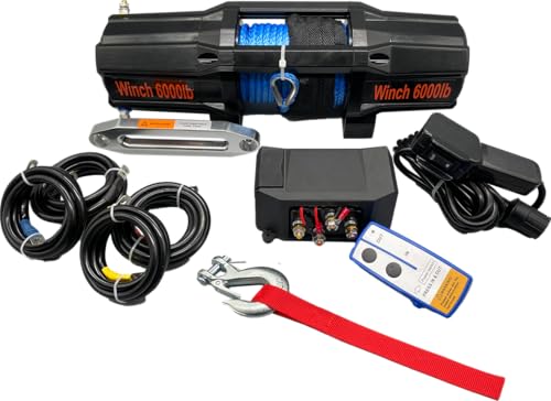 Berger & Schröter Treuil électrique professionnel 12 V, 2727 kg, 2,57 kW avec câble en acier, treuil moteur tout-terrain, pour quads, ATV, UTV, voiture, 6000 lb avec télécommande radio
