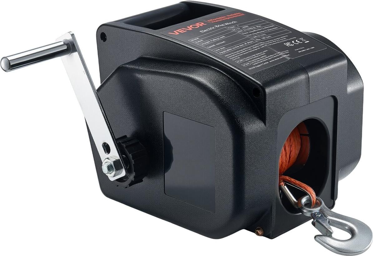 Treuil électrique pour bateau, 12 V CC 300 W, treuil électrique réversible pour remorques pouvant supporter jusqu'à 900 kg, fonctions d'alimentation, de coupure d'alimentation et de roue libre pour bateaux avec télécommande filaire et manivelle