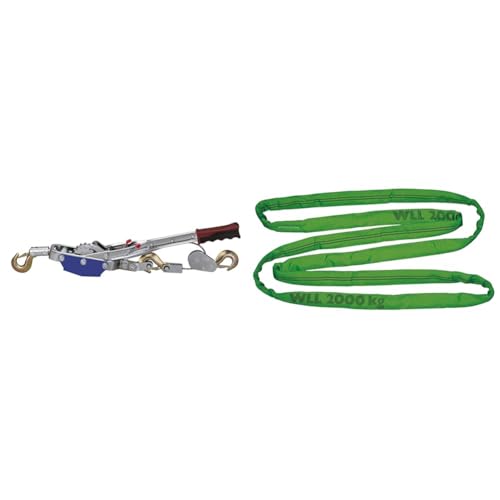 Eurofarm 37117 Palan manuel capacité 4 tonnes, diamètre 6 mm 3 m & Elingue Cravate 3 m/Vert/ 2 000 kg/ 4 000 kg