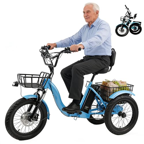 Tricycle électrique adulte 20 pouces | Mobilité stable pour courses et déplacements quotidiens | Idéal pour adultes et seniors | Vélo électrique 3 roues avec grand panier arrière, confort et équilibre
