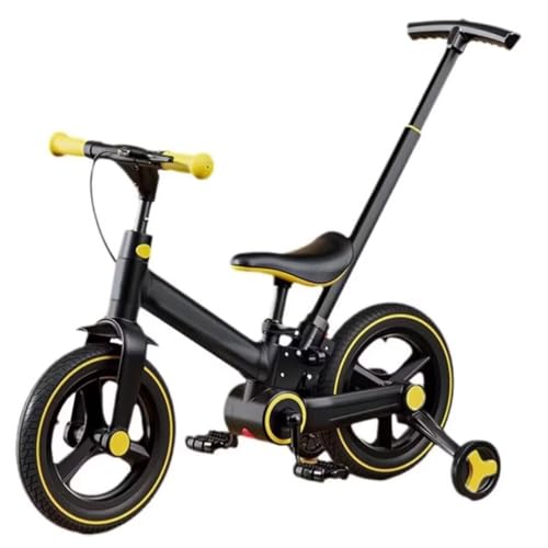 NIUSABOU Tricycle Pliable et réglable, Tricycle 4-en-1 réglable avec pièces Amovibles, Options de tiges poussée Multicolores(Yellow,with pushrod)