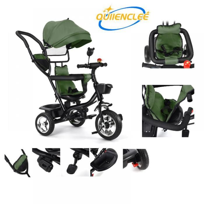 Bébé Cycle - Tricycle 4 en 1 avec Cloche Miroir Vert-avec Pare-Soleil-QUIIENCLEE-tricycle