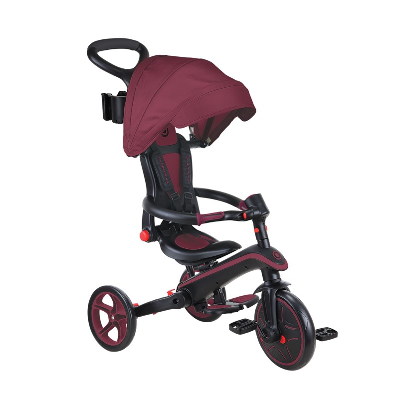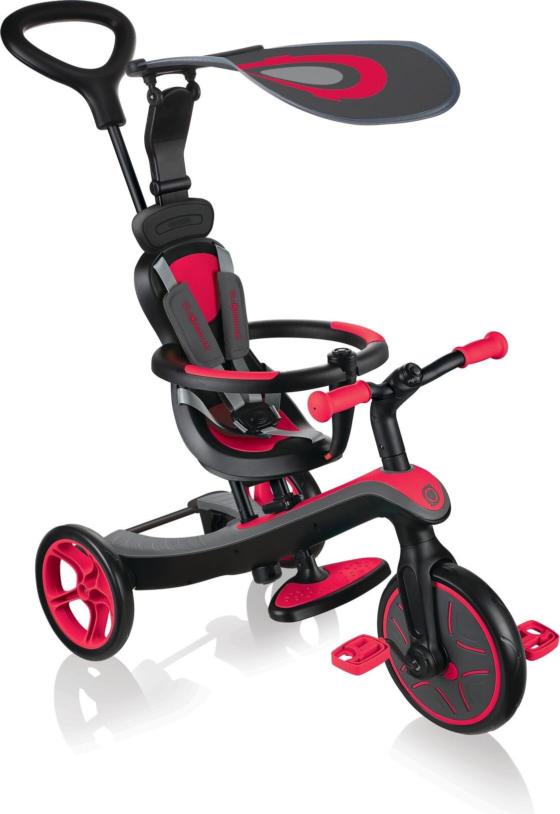GLOBBER EXPLORER TRIKE 4in1 - Poussette, tricycle et vélo d'exercice, 10/8,5 pouces, siège TPR, hauteur réglable, rouge