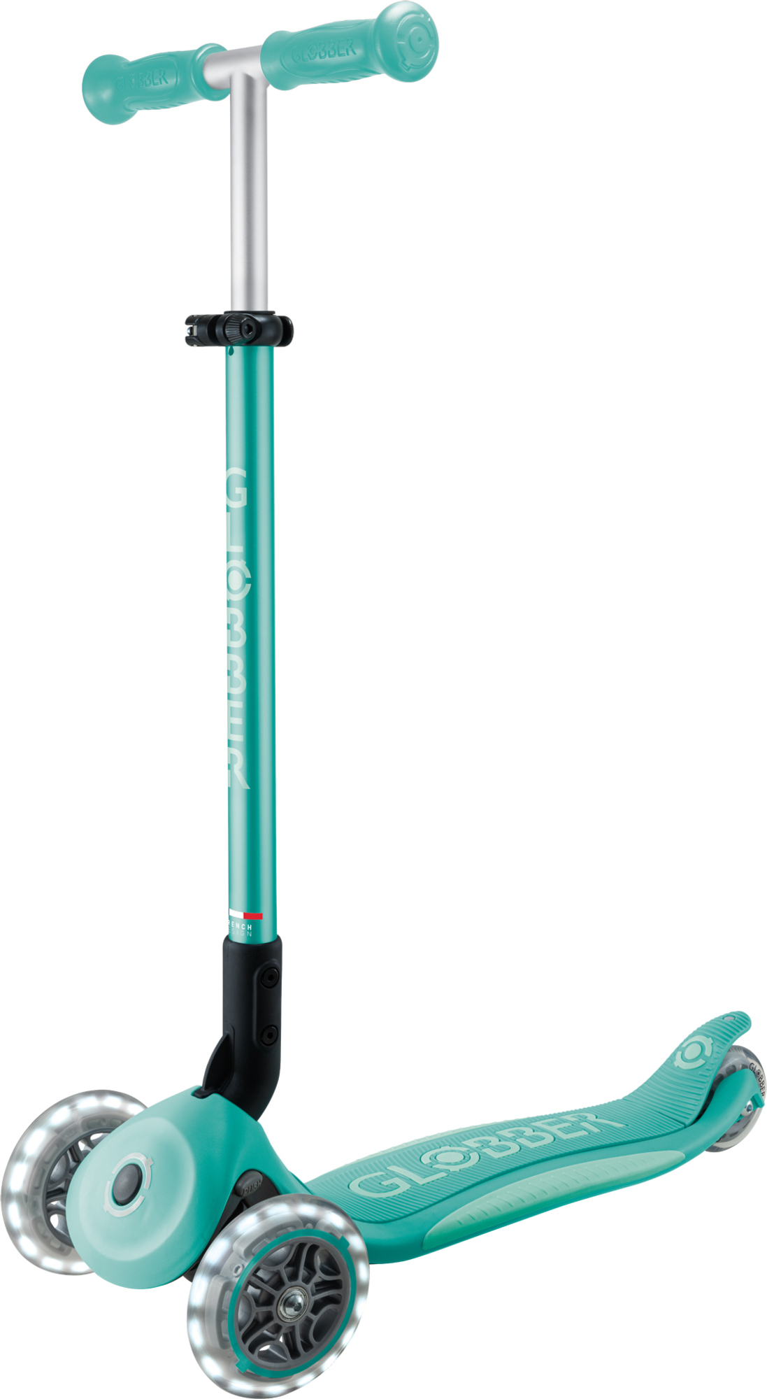 Globber Scooter Kids Tricycle Plus - Primo Foldable Plus Lights V2 Dark Mint Glowing Wheels