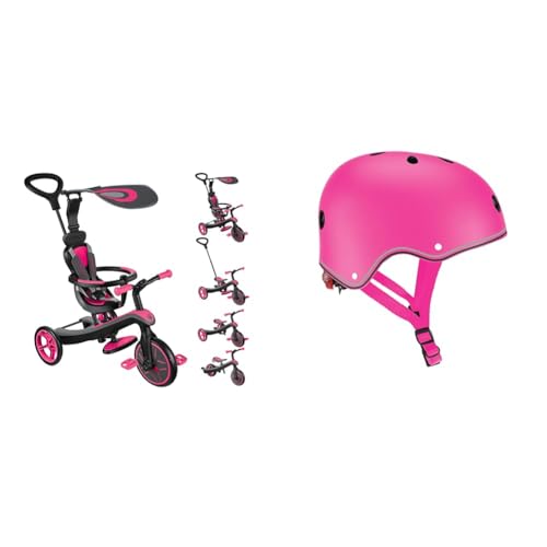 Globber Jeunesse Unisexe Tricycle, Rose, Taille Unique & Casque Primo XS/S - Casque de Protection pour Les Enfants, Rose Intense
