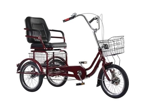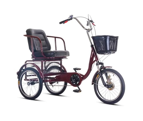 NIUSABOU Tricycle Pliable pour Adultes, Tricycle Senior Adulte de 16 Pouces avec pédales, siège en éponge, accoudoirs, pneus Multicolores(Wine Red)