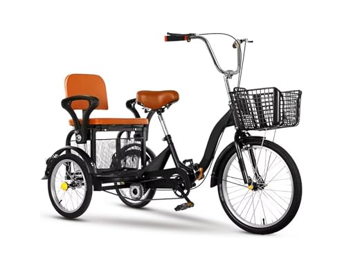 NIUSABOU Tricycle Pliable pour Adultes, Tricycle Adulte avec Panier de Chargement siège Passager en Brun Noir 20 Pouces(Black)