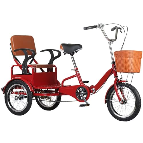 NIUSABOU Tricycle Pliable pour Adultes, Le Compartiment de siège arrière Tricycle Adulte se Pliant Rouge Noir 16 Pouces Double freine la capacité 400Lbs(Red)