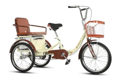 NIUSABOU Tricycle Pliable pour Adultes, Tricycle Pliant de 20 Pouces avec Panier et siège arrière Multicolore(Beige)