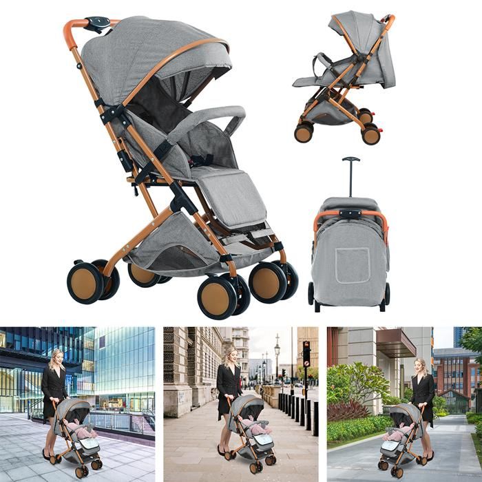 Assise Poussette - XUANYU - Tricycle à Pousser - Très Grand auvent + Grande Armature + Réglable + Moustiquaire - Gris