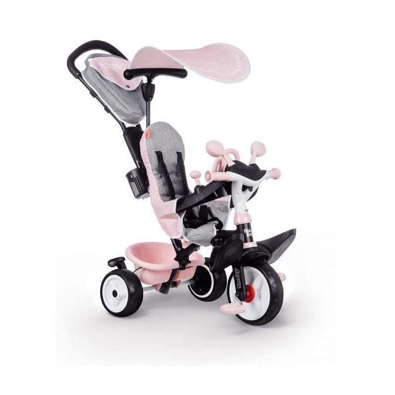 Smoby -Tricycle évolutif enfant Be Fun Confort - Rose - Canne parentale amovible - Repose-pieds rétractable