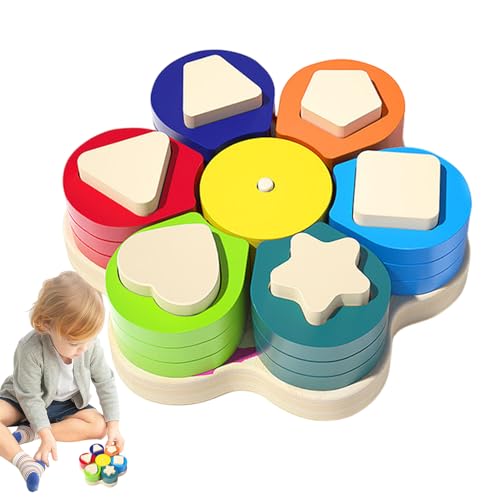 Eojpdji Jouet en Bois de Tri des Couleurs et Empilage - Association,Trieur de Formes Géométriques | Jeu Éducatif de Tri et d'Association de Formes Géométriques en Bois pour l'Apprentissage Précoce des