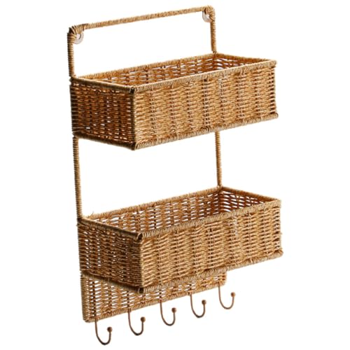 Paniers de rangement suspendus Panier suspendu tissé Panier mural Panier de fruits et légumes Organisateur de courrier Support mural Trieur de rangement à 2 niveaux avec 5 crochets Support tissé for d