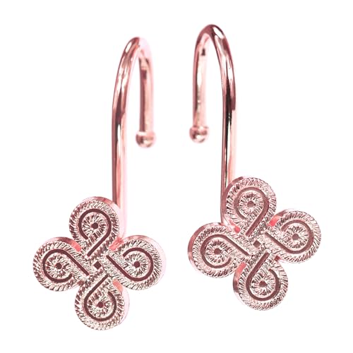 Lot de 12 crochets de rideau de douche en métal rose doré : anneaux de rideau de douche en métal antirouille pour salle de bain – Crochets décoratifs en forme de trèfle à fleurs glamour pour tringle