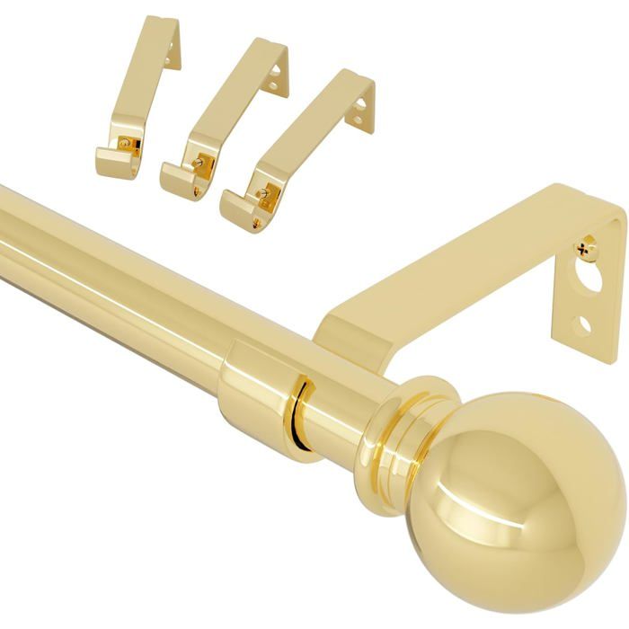 MODE Premium Collection Tringle à rideau simple avec embouts cylindriques – Plusieurs tailles et couleurs Fits 36" - 72" wide windows doré