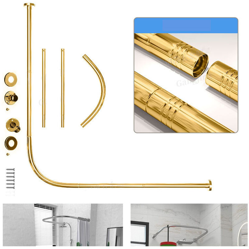 Tringle à rideau de douche extensible en acier inoxydable, en forme de L, perforée, pour salles de bain et magasins de vêtements (doré, 108-138 cm)