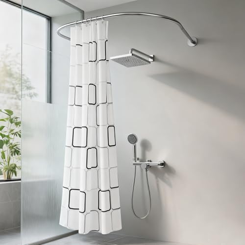 U Forme Barre Rideau Douche Arrondie, Tringle Rideau Douche Angle en Acier Inoxydable, Extensible Tringle à Rideaux, pour Baignoire, avec Rideau de Douche et Crochet (80 to 110 x 100 x 80 to 110cm)