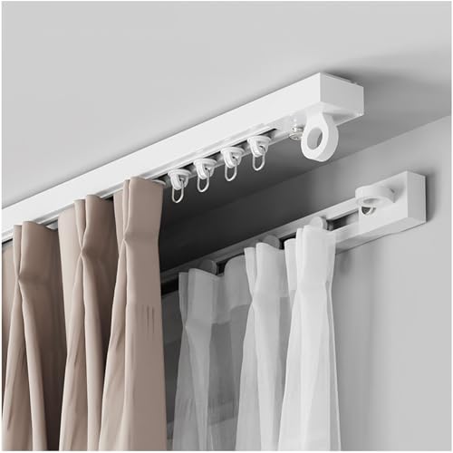 Rail de Rideau Montage Murale Supérieur, Système Tringle Rideaux Autocollante, Coulissant Silencieux Sans Perforation pour Bureau, Salon, Chambre Fenêtres Plafond Mur 40-600cm(0.50m)