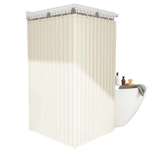 Tringle A Rideau De Douche Angle sans Percage, Tringle À Rideau De Douche Pliable avec Ventouses, Barre De Douche en L Rétractable pour Baignoire De Salle De Bain(Beige,136cm)