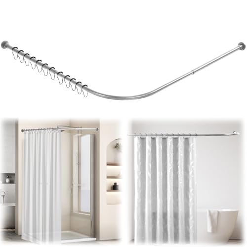 Tringle à rideau de douche - Support arqué rond - Extensible - En acier inoxydable - Tringle de douche d'angle - Rail pour baignoire - Avec 24 anneaux de rideau - Pour salle de bain, baignoire, balcon