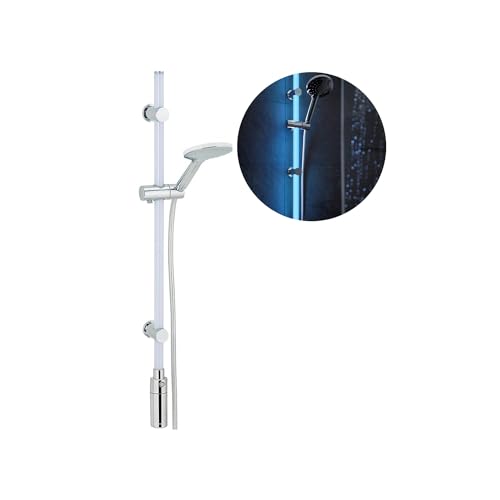 Set de tringle de douche avec pommeau de douche, avec éclairage LED, en ABS, 94 cm, chromé
