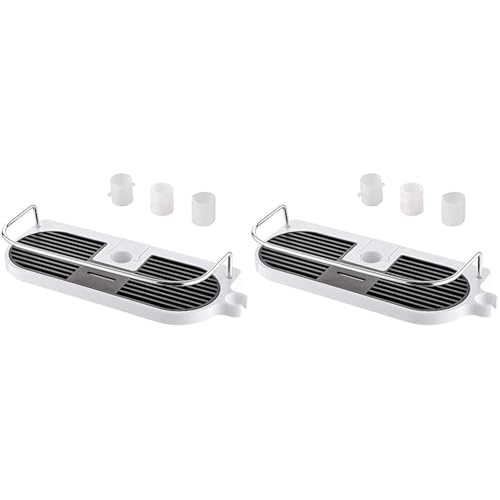 Ibergrif M34032, Porte Savon Douche, Support sans Percage, Étagère pour Tringle de Douche 19mm-25mm, Noir et Blanc (Lot de 2)