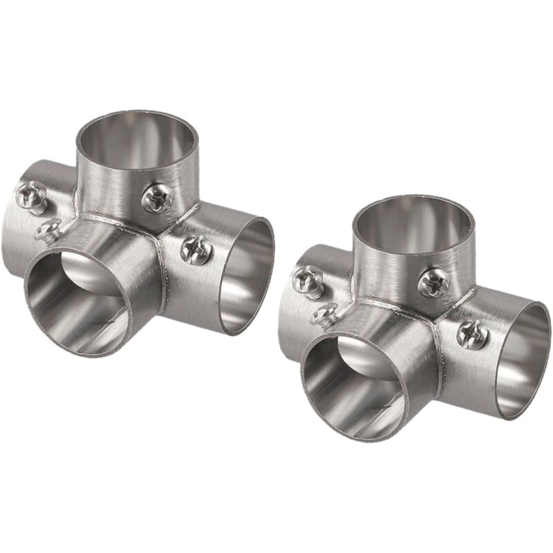 Lot de 2 raccords de tuyau en acier inoxydable à angle droit pour tringle à vêtements, étagères, meubles et serre (angle droit 4 voies)