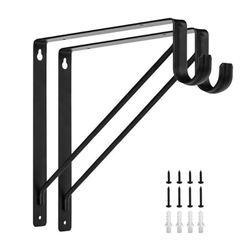 Supports for étagères, lot de 2 supports d'étagère muraux avec crochet, supports de tringle de placard robustes, supports d'étagère triangulaires à angle droit en métal en fer, support d'étagère flott